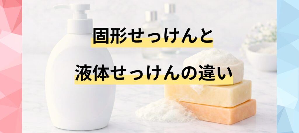 | 固形せっけん | 高い洗浄力と肌へのやさしさの両立 コスパと長持ち、環境への配慮(エコ・衛生的) 天然由来成分が多く、すすぎ残しが少なく肌に負担をかけにくい 敏感肌、赤ちゃんにも使いやすい | しっかり泡立てる必要があり、保管に注意が必要 |